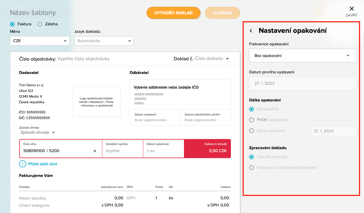 - Počet opakování – Doklad bude vystaven v počtu iterací, které zde uvedete.