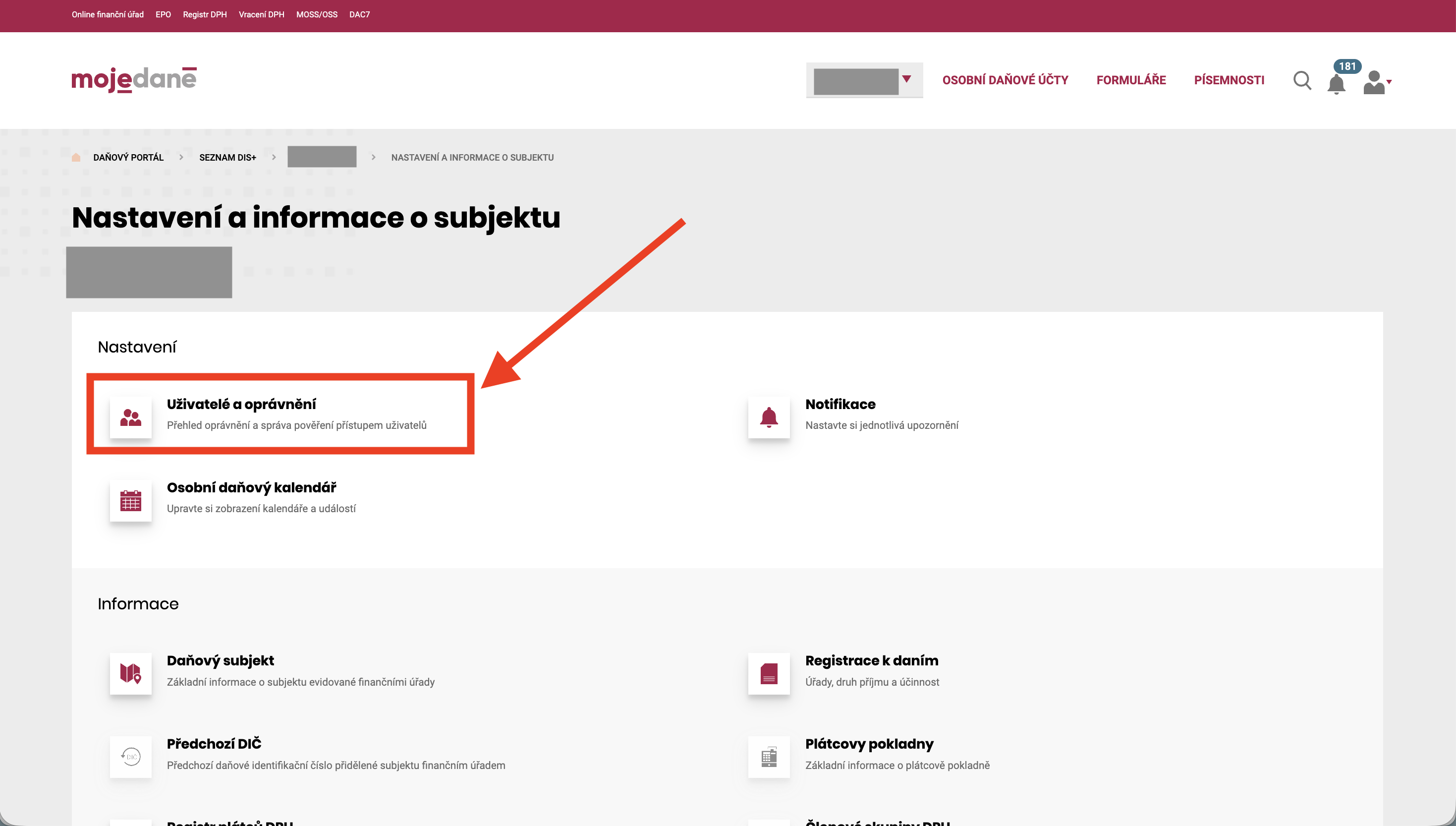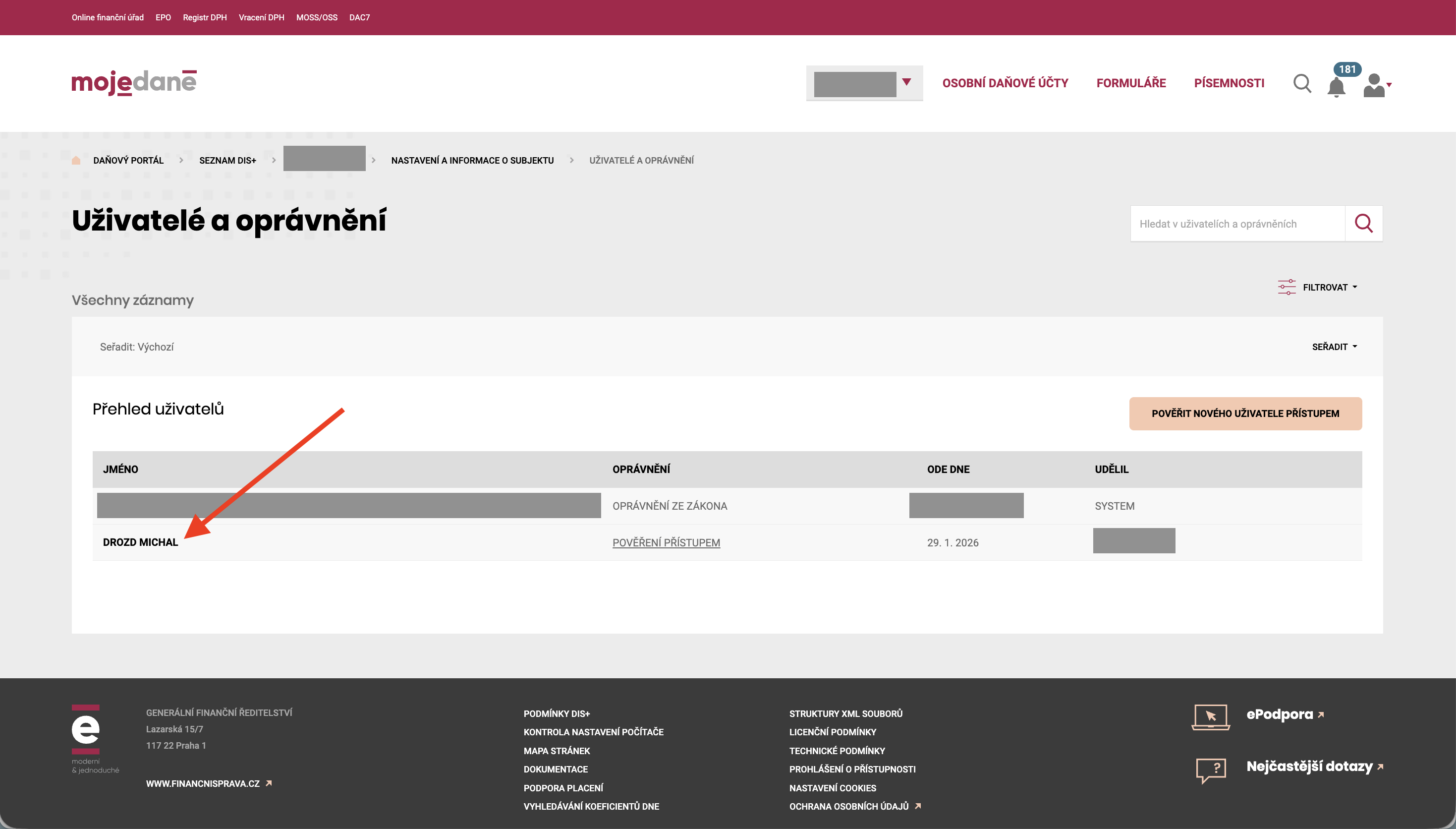 Návod k udělení přístupu do Daňové informační schránky (DIS+)