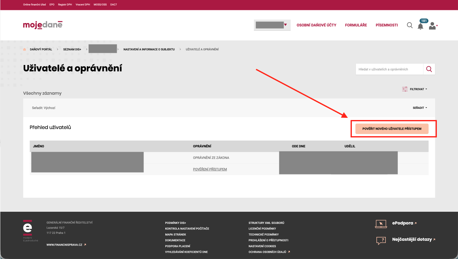 8. Zvolte možnost Pověřit nového uživatele přístupem.